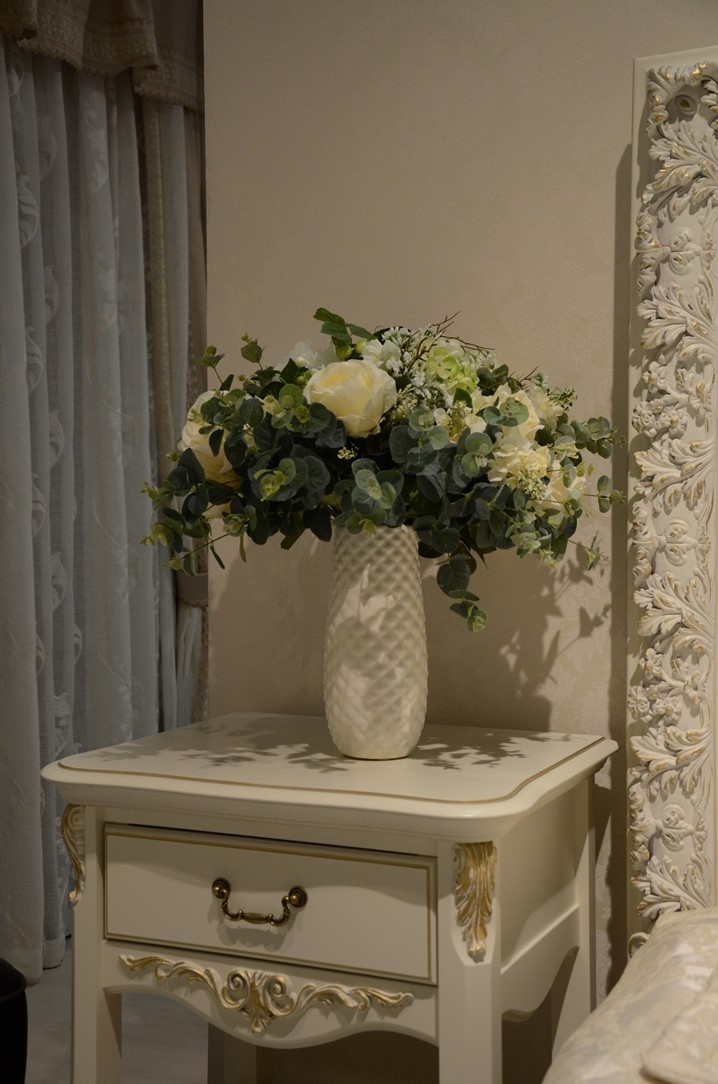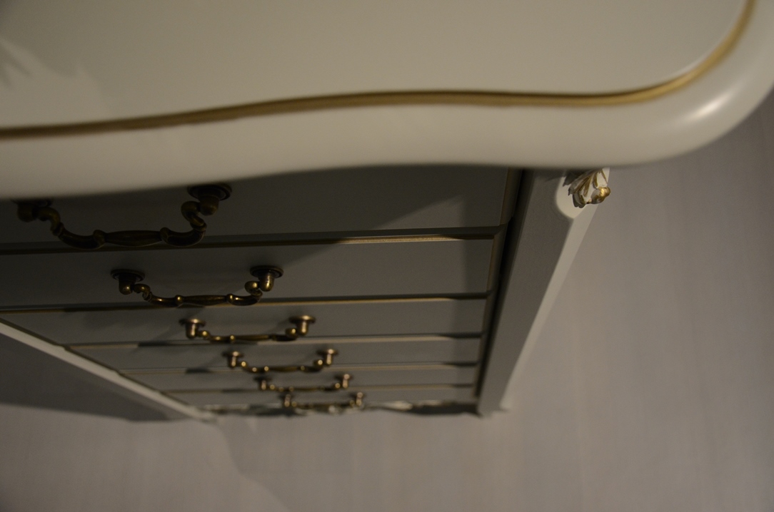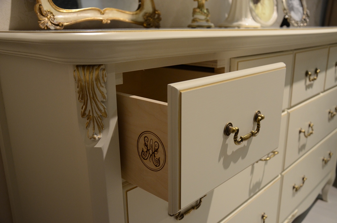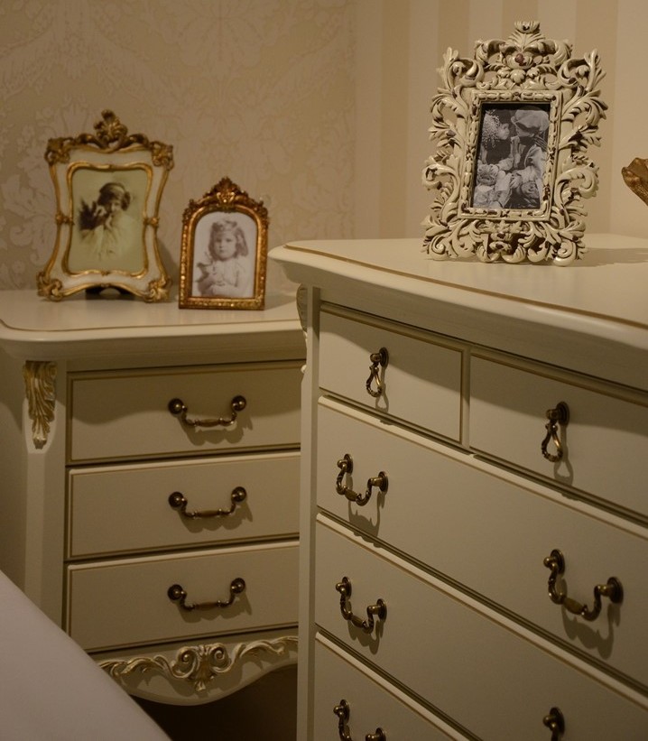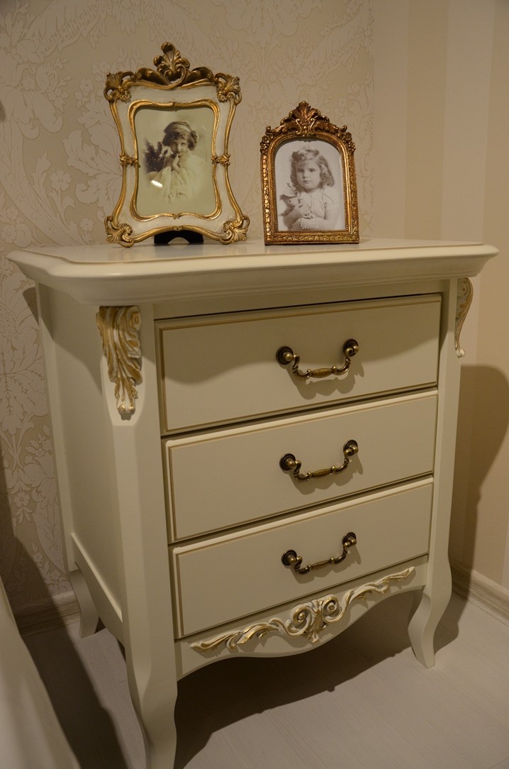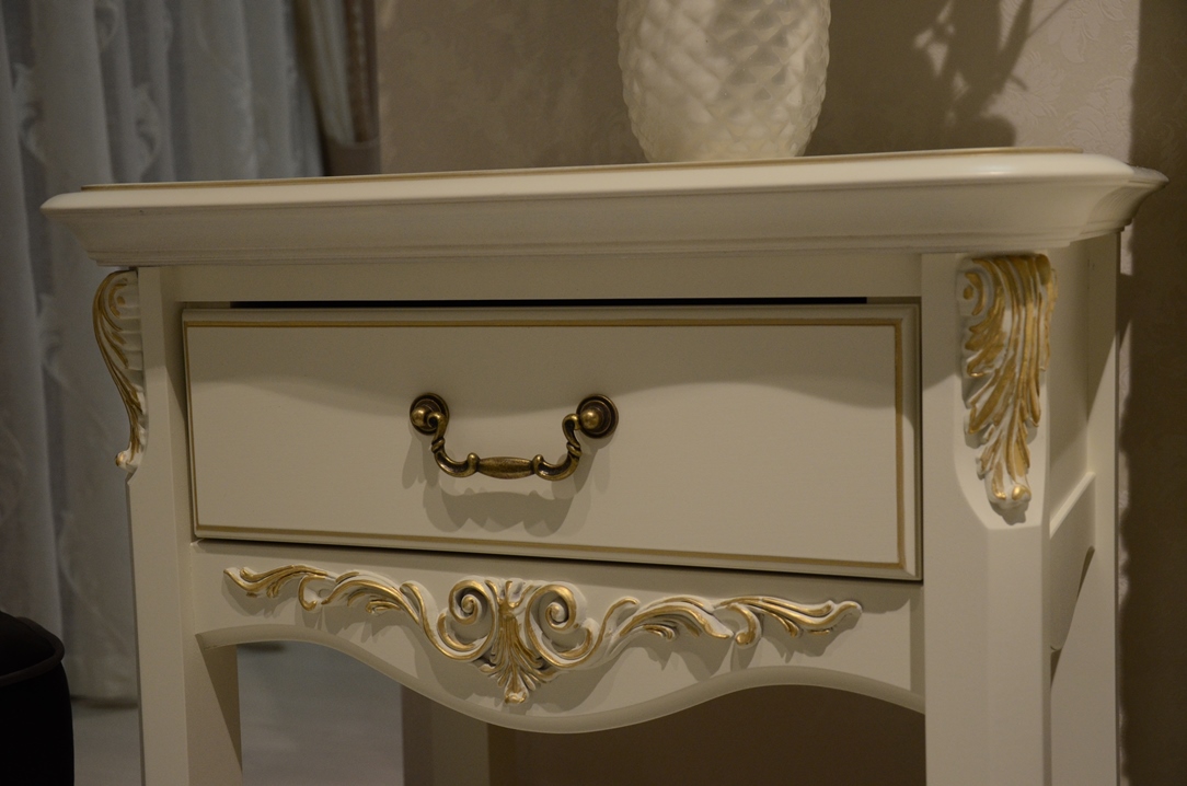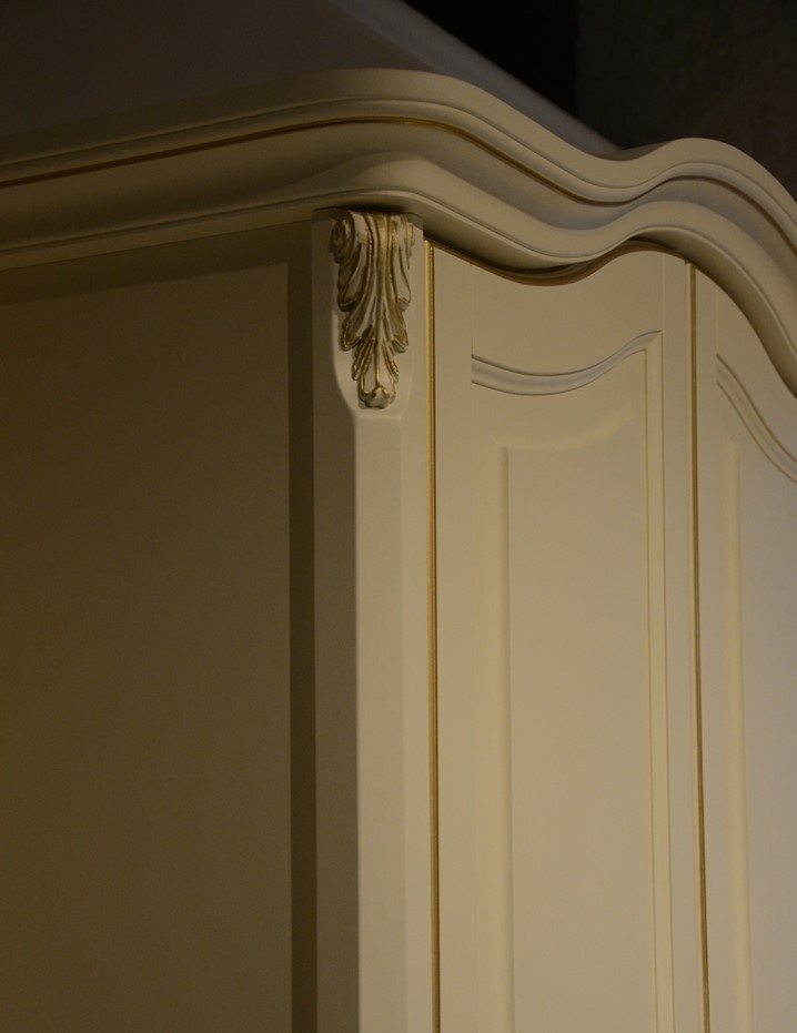 Romantic gold – это изысканная коллекция корпусной мебели в стиле итальянской классики. Удачное слияние изящества и функциональности. Мебель изготовлена из массива бука в сочетании с элементами МДФ и окрашена в цвет "слоновая кость", текстура дерева не видна. Отличительная черта мебели Romantic gold – отделка золотой патиной на столешницах, фасадах и капителях. Элементный ряд широк и позволяет создать обстановку спальни, комнаты подростка, гостиной или домашнего кабинета.