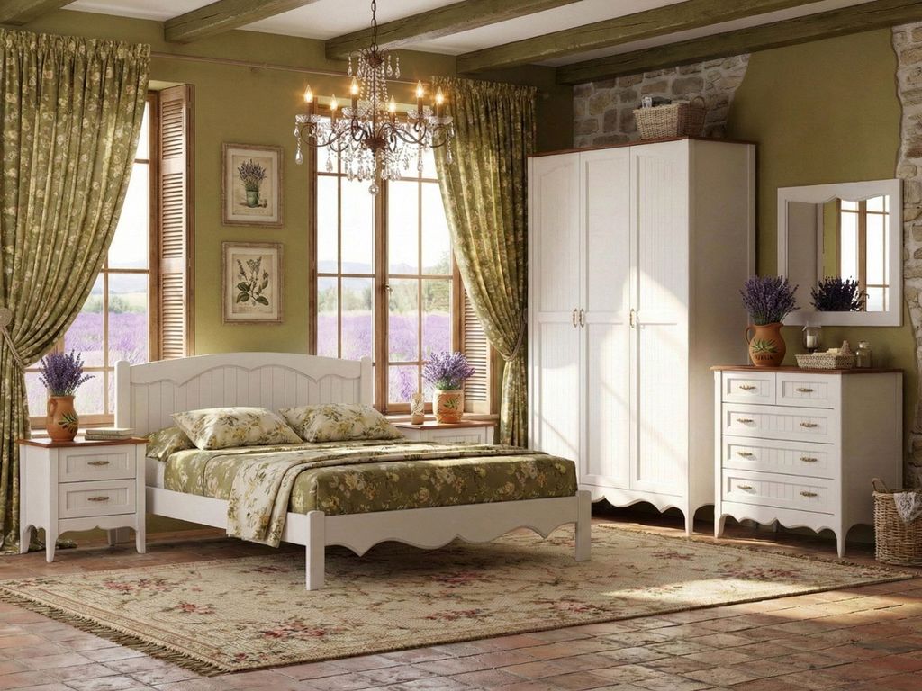 Выдержанная в кантри-стиле, коллекция Тулуза поможет создать обстановку спальни не только дачи или загородного дома, но и городской квартиры — для всех любителей подобных интерьеров. На фото мебель представлена в комбинированном окрашивании, корпуса предметов покрыты белой эмалью, столешницы, крышки и карнизы – окрашены бейцами. Эта схема не является обязательной и лишь показывает возможность. Заказать мебель можно как в эмали целиком, так и в древесном цвете, различных оттенков.